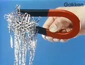 磁石がものを引きつけることを、身近にあるものを使って単純明快な実験で示した作品。ナレーションを一切排した構成が特徴的。