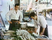 さかなや、ようひんてんの一日を取材し、店の人たちの仕事の特色や工夫を分かりやすく描いた。当時の商店街の様子も伺える。